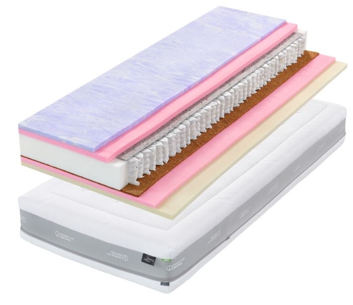 Multi Pocket, pružinové jádro, 7 anatomických zón - precizně podpírá a kopíruje tělo v každé poloze. Robustní pěnový rám pro stabilitu konstrukce a pohodlné vstávání.