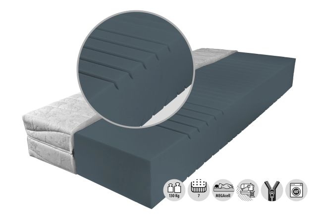 Jádro matrace IVANA DE LUXE je vyrobeno speciální metodou z unikátní polyuretanové MEGAcell pěny, která je typická svým vysokým obsahem buněk. Právě vysoké množství buněk zlepšuje odvod tepla a vlhkosti, zvyšuje prodyšnost materiálů, díky čemuž matrace vyniká svou vysokou odolností a dlouhou životností. Celková výška matrace včetně potahu je 26 cm. Matrace je opatřena snímatelným, oboustranně prošitým a pratelným potahem s nadčasovým designem.