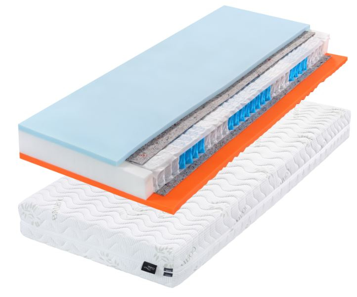 Ortopedická matrace s taštičkovými pružinami a antialergickým potahem s povrchovou úpravou BAMBOO. Oboustranná vzdušná matrace s rozdílnou tuhostí stran a s vysokou bodovou elasticitou pro dokonalou podporu páteře. Kvalitní potah se speciální úpravou vláken, která zajišťuje vynikající odvod vlhkosti a brání tvorbě alergenů.