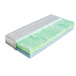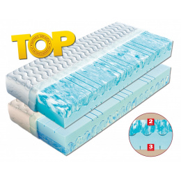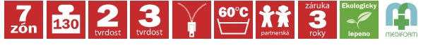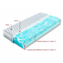 Luxusní matrace ATLANTA s výškou 25 cm Vás zaujme svou modrou žíhanou pěnou Cellflex. Jedná se o komfortní studenou HR pěnu se speciálními vlastnostmi. Cellflex je extrémně pružná a dokáže se přizpůsobit všem detailům lidského těla. Je měkčí a poddanější než polyuretanová pěna na druhé straně matrace, proto u této matrace můžete využít volbu dvojí tvrdosti jednotlivých stran. Obě pěny jsou extrémně prodyšné a udržují jádro matrace vždy suché a odolné vůči mikroorganismům. Důmyslný antidekubitní prořez ložných ploch matrace vyhovuje i osobám dlouhodobě upoutaných na lůžko, protože se ideálně tvaruje podle každé polohy ležícího těla a zabraňuje vzniku proleženin. Matrace je vhodná na všechny typy roštů, ale i na pevnou desku. Matrace ATLANTA je 7 zónová.