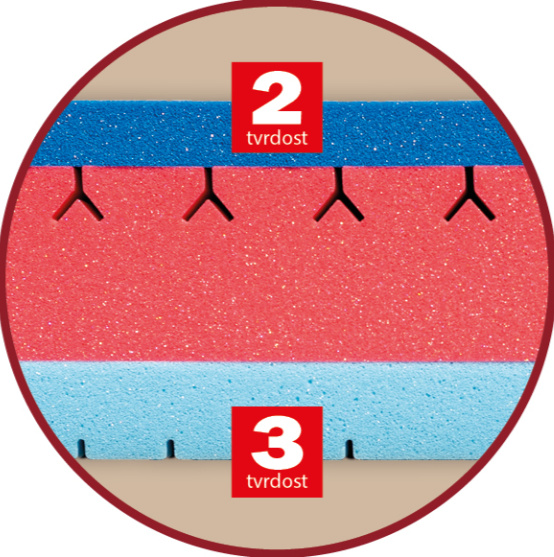 Luxusní matrace, jejíž jádro tvoří 12 cm vysoká vrstva speciální antibakteriální pěny značky Sanitized, která poskytuje trvalou a účinnou ochranu proti bakteriím, roztočům a plísním. Tyto vlastnosti ocení nejen alergici, ale i ti, kteří kladou důraz na vysokou hygienu lůžka. Je navržena se zářezy ve tvaru „Y“, které napomáhají odlehčení v místech největšího zatížení - oblast ramen. Vrchní stranu matrace změkčuje oblíbená visco-elastická pěna. Je charakteristická efektem pomalého vracení se do původní polohy. Pouhým přetočením matrace získáte pevnější stranu se vzdušnou a elastickou studenou (HR) pěnou, která má antidekubitní prořezy v pěti zónách. Dokonale se přizpůsobí ležícímu tělu a zamezuje vzniku proleženin. Matrace je vhodná na všechny typy roštů, včetně motorových.
