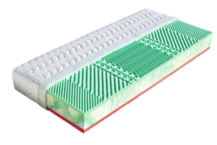 Jádra těchto matrací jsou tvořena pěnou MediFoam (32 kg/m³), která má skvělé podpůrné vlastnosti. Červená ložná plocha je tvořena antibakteriální pěnou tvarovanou do masážních nopů s úpravou Sanitized (32 kg/m³). Jsou vhodné nejen pro alergiky. Jejich druhá strana je tvořena pěnou MediFoam (35 kg/m³), která je taktéž tvarovaná do nopů. Tuto matraci vyrábíme ve třech výškách. Je vhodná pro všechny typy roštů.