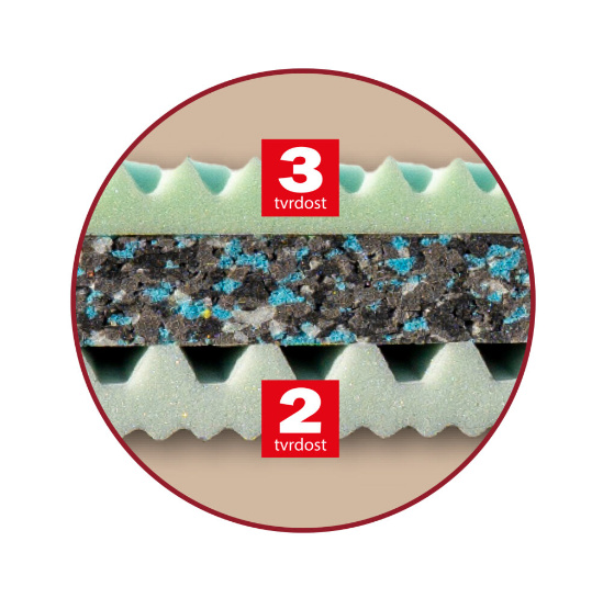Sendvičová matrace s jádrem z pojeného polyuretanu (PUR RE 80). Nosné vrstvy matrace tvoří pěna MediFoam (32 kg/m³) tvarovaná do masážních nopů a profilovaná vrstva pěny MediFoam (32 kg/m³) zabezpečující provzdušnění matrace. Matrace umožňuje volbu dvou tvrdostí pouhým otočením.