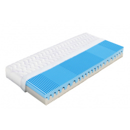 Pevná ortopedická matrace s volbou dvojí tvrdosti, která Vás nadchne špičkovou kvalitou vysoce gramážních pěn. Její provzdušněný střed se díky různě širokým vlnkám (zónám) výborně přizpůsobí ležícímu tělu. Měkčí stranu tvoří luxusní pěna značky Cellflex (40 kg/m³), která je díky svým otevřeným buňkám prodyšná a zajistí vynikající rozložení tlaku na matraci. Díky vysoké hustotě je velmi odolná a příjemná. Pevnější strana je tvořena tvrzenou modrou pěnou MediFoam (35 kg/m³). Obě pěny jsou na povrchu příčně profilované do vlnek pro větší vzdušnost a lepší rozložení váhy. Profil umožňuje spojení materiálů bez použití lepidla. Matrace je vhodná pro všechny typy roštů. Celková výška matrace cca 22 cm Matrace je vhodná na všechny typy roštů, ale i na pevnou desku. Matrace HERMÍNA je 5 zónová.