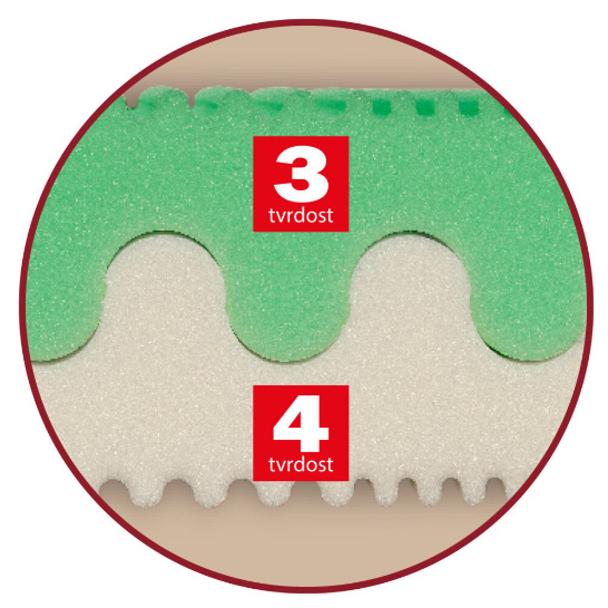 Pětizónová matrace s volbou dvojí tvrdosti je složená ze dvou velmi kvalitních a elastických pěn MediFoam (38 a 30 kg/m3). Jemná masážní profilace na povrchu těchto pěn přispívá k většímu provzdušnění matrace. Pěny jsou spojeny vlnkovitým profilem bez použití lepidla. Je vhodná pro zákazníky, kteří upřednostňují tvrdší matrace. Matrace je vhodná na všechny typy roštů.