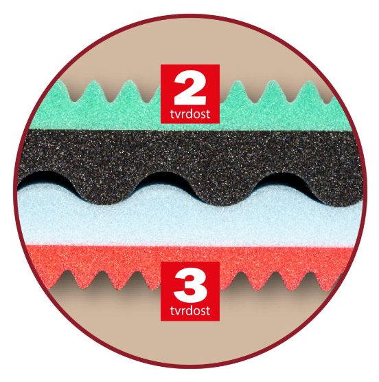 Jádro této matrace se skládá ze dvou odlišných pěn zasazených do sebe podélnou vlnou. Černá pěna je příjemně elastická (35 kg/m³), modrá tvrdší (35 kg/m³) s vyšším odporem proti stlačení. Vrchní měkčí ložná vrstva tvarovaná do nopů s antibakteriálním účinkem (32 kg/m³) zabezpečuje harmonický spánek. Zelená ložná plocha ve tvaru nopů (32 kg/m³) je určena pro uživatele, kteří preferují tvrdší stranu matrace.
