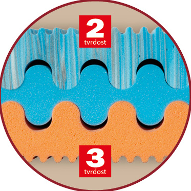 odolná proti bakteriím a roztočům. Pevné jádro z MediFoam pěny (35 kg/m³) je tvarováno do souměrných vlnek, aby se mohlo přizpůsobit ležícímu tělu. Tvrdší stranu matrace (tvrdost č. 3) tvoří studená pěna (45 kg/ m³), která je pro větší provzdušnění a pohodlí profilovaná do vlnek. Matrace je vhodná pro všechny typy roštů.