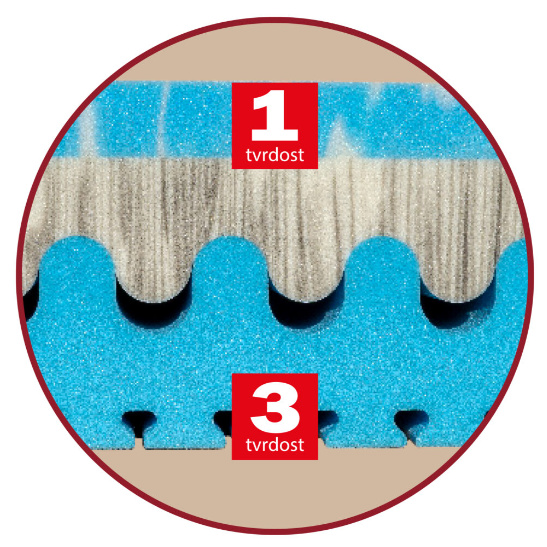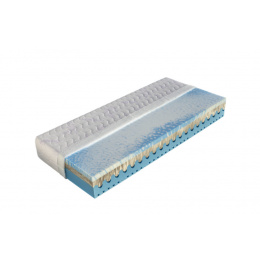 Partnerská matrace dvojí tvrdosti z velmi kvalitních odolných pěn. Měkčí stranu matrace (tvrdost č. 1) tvoří velmi poddajná studená pěna s výškou 5 cm a s gramáží 45 kg/m3. Tato speciální nebeská pěna s příjemným povrchem je krásně měkká, velmi pohodlná a nevytváří protitlak vůči tělu. Na této nebeské pěně budete spát jako na obláčku. Střed matrace tvoří oblíbená studená pěna PanterFoam (50 kg/m3), která je charakteristická vysokou prodyšností a nadstandardní odolností. Na pevnější stranu matrace (tvrdost č. 3) je použita vysoce gramážní pěna MediFoam (35 kg/m3) s ventilačními zářezy v sedmi anatomických zónách. Matrace je vhodná na všechny typy roštů.