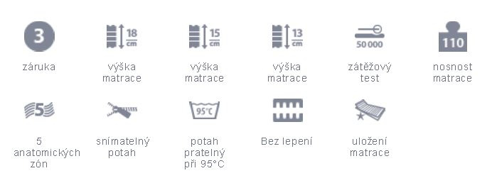 • Výška matrace 9 cm, za příplatek výška 13, 15 a 18 cm