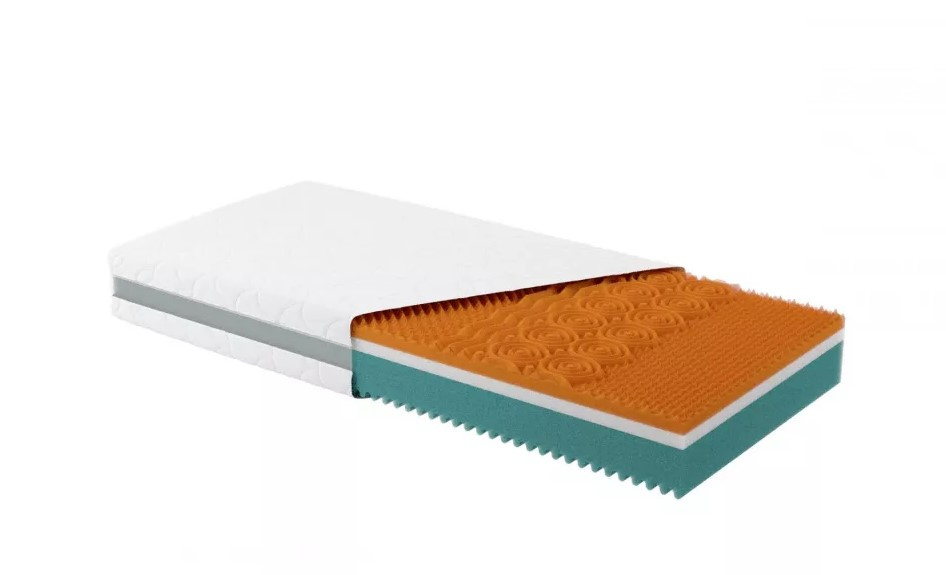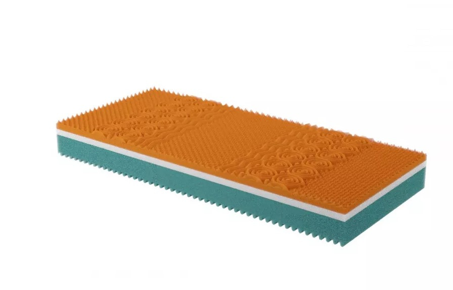 Spodní vrstva ( zelená) je vyrobena z polyuretanové pěny a slouží jako opora celé matrace. Díky jejím speciálním prořezům je navíc zajištěno optimální odvětrávání matrace.