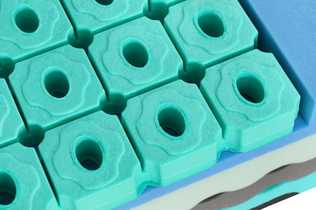Ramenní zóna AIR MEMORY: DNA Nucleo modul z VISCO pěny ALOE 5 cm. Beztížný stav pro ramena. Ramenní zóna AIR: XDURA 5 cm 58 kg/m3 dokonale kopírující a prodyšná, super odolná pěna s termoregulační funkcí.