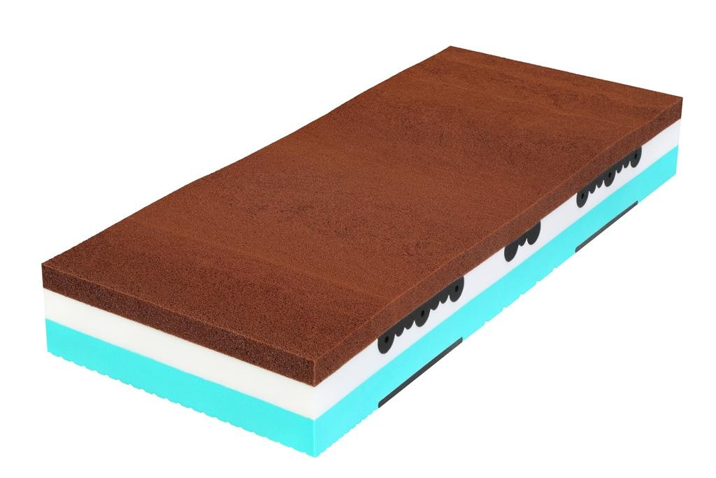 Třístupňová konstrukce – odrazová pružnost se zvyšuje v každé vrstvě nejmodernějších pěn velmi vysoké objemové hmotnosti s nejvyšší možnou propustností vodních par. Úžasně pohodlná a stabilní konstrukce.