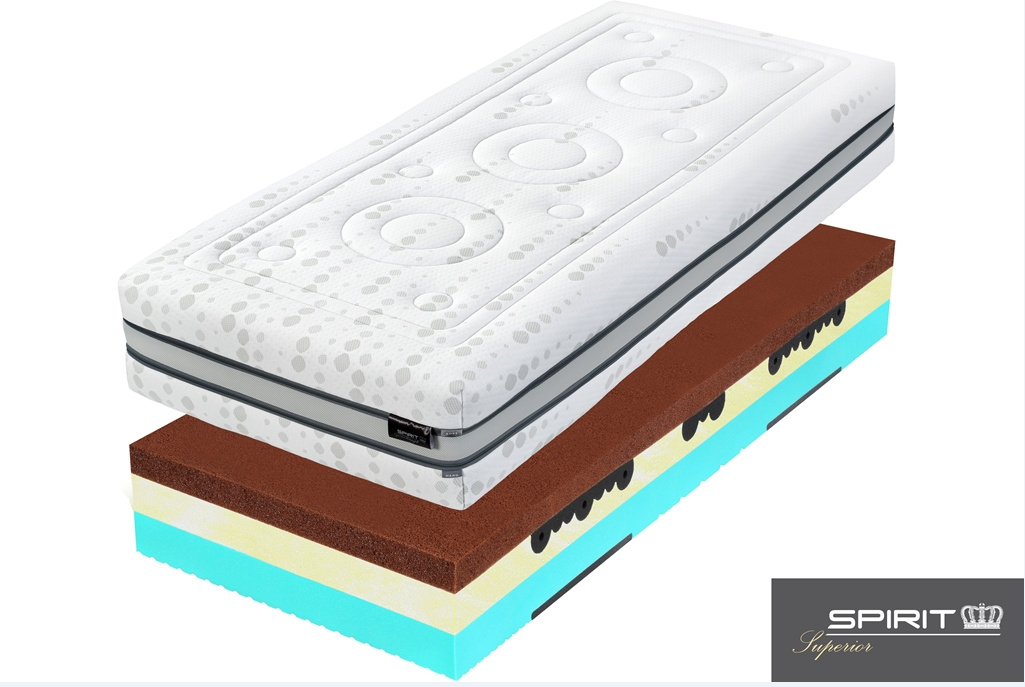 Matrace SPIRIT SUPERIOR TRIUMPH - Nezničitelná pružnost, poddajnost, extra vzdušnost a termoregulace díky pěně XDURA, která spojuje to nejlepší ze všech dosud známých materiálů. Odlehčení celého těla. Vynikající eliminace tlaku. Matrace s vyšší střední tuhostí a velmi vysokou odrazovou pružností pro velice snadnou změnu poloh v průběhu spánku.