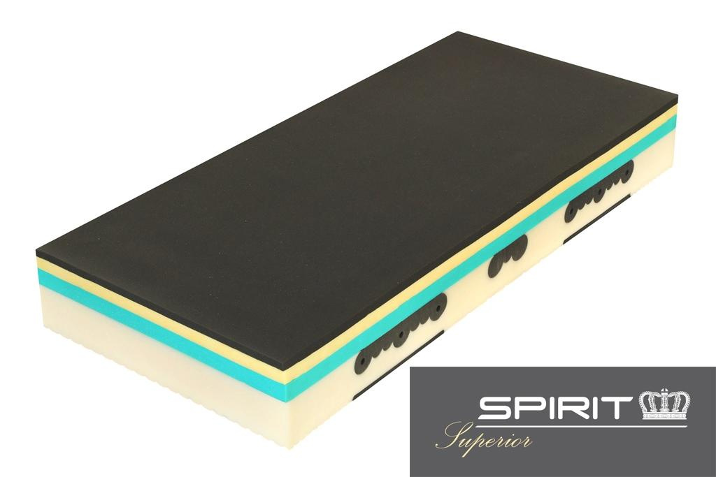 Matrace SPIRIT Superior VISCO se střední tuhostí a nižší odrazovou pružností. Silný paměťový efekt, který uleví kloubům. Vhodná pro alergiky. Matrace s komfortní ochranou páteře a 7-mi zónovou ortopedickou konstrukcí. Výšku matrace možno zvolit 26 nebo 30 cm.