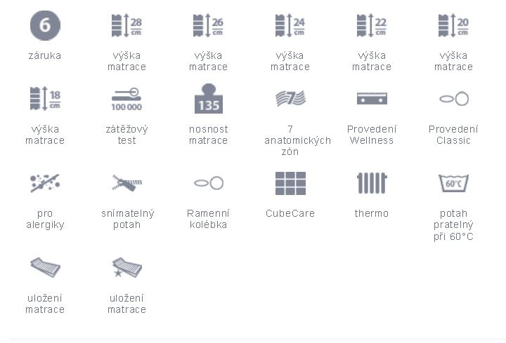 - Potah Wellness s funkcí odvodu statického náboje z těla. Prošitý klimatizační vrstvou dutého vlákna. Snímatelný, dělitelný a pratelný (60 °C).
