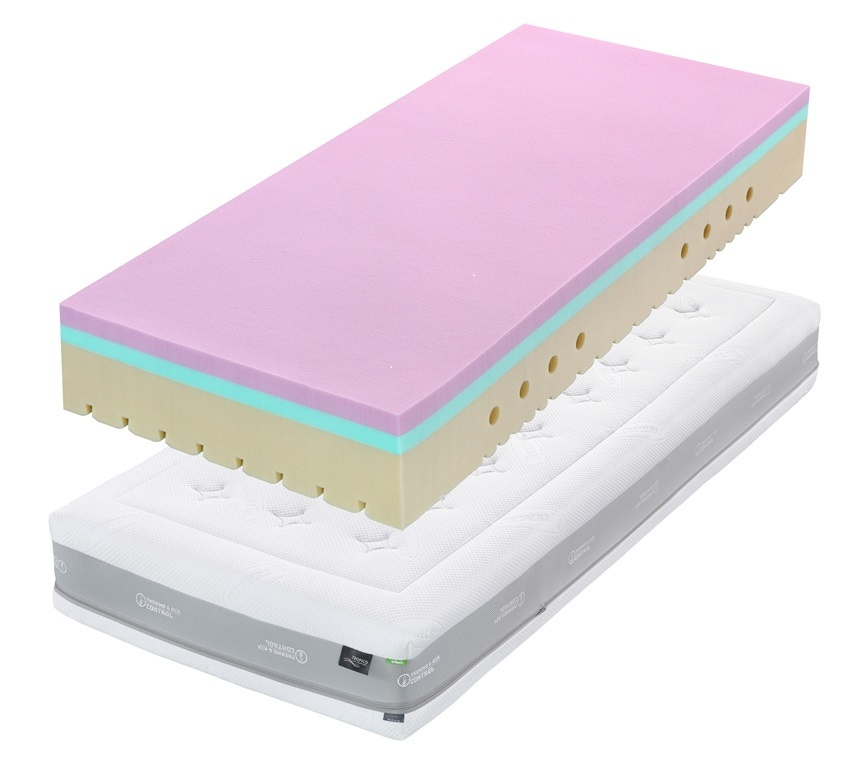- Hybridní pěna. Elastická vrstva zvyšující odrazovou pružnost, vzdušnost matrace a pocitovou pevnost. Zajišťuje optimální klima a napomáhá předcházet pocení.