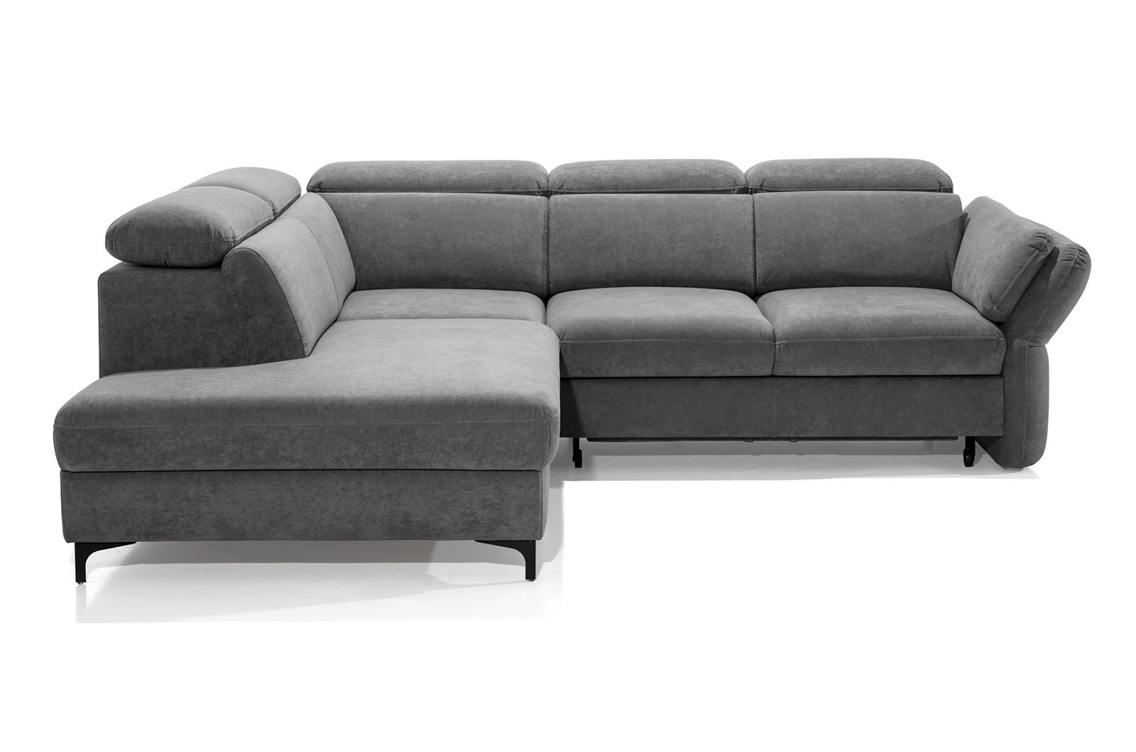 Moderní, prostorná, pohodlná rohová sedací souprava. Sedačka je rozkládací s lůžkem pro příležitostné přespání, úložným prostorem pro lůžkoviny nebo deky. U rohovky je kladen důraz na pohodlí sezení nastavitelnými opěrkami hlavy. Velký výběr potahových látek. V sedáku jsou použity pružinové vlnovce a odolná PUR pěna.