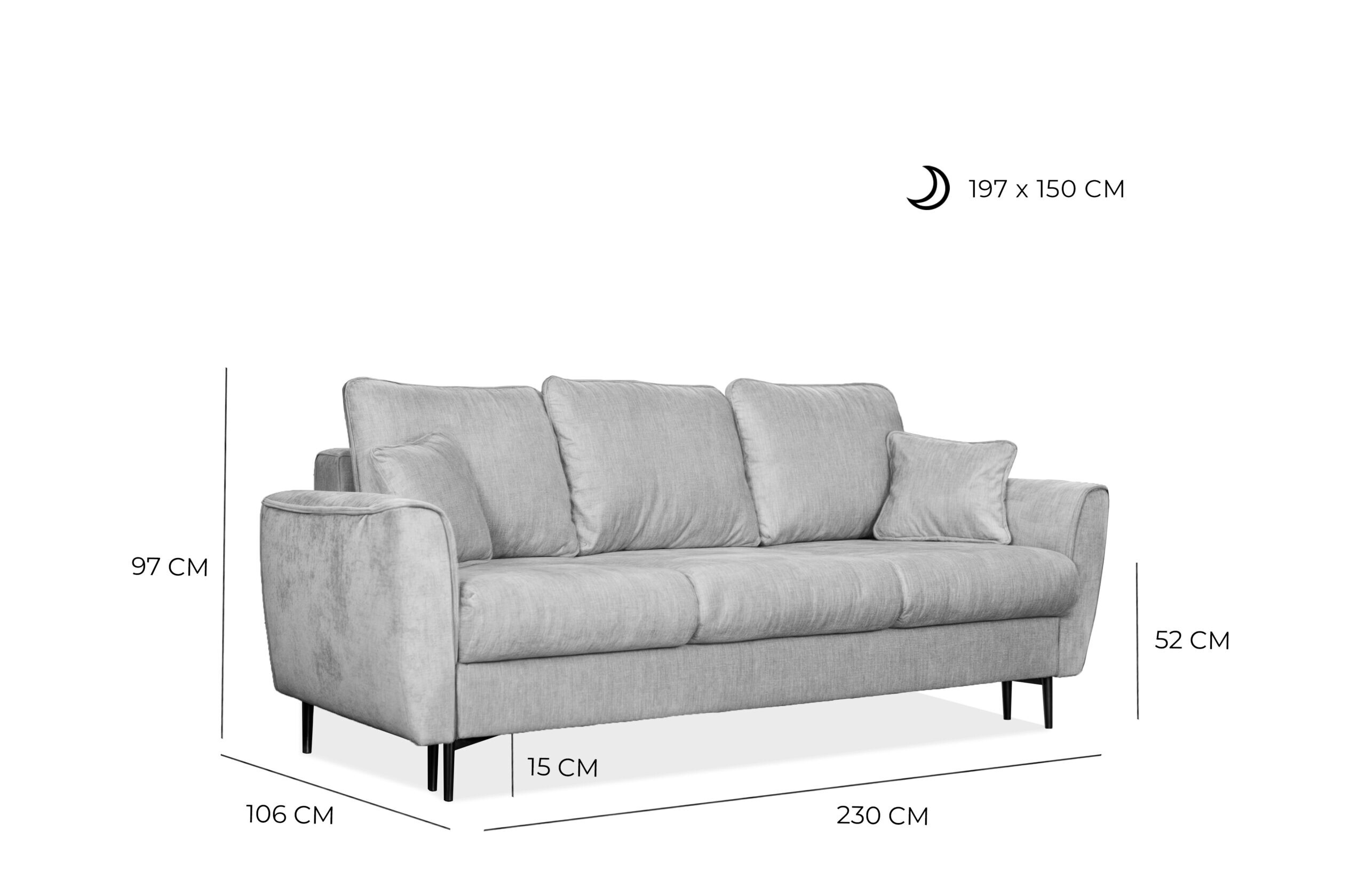 Pohovka LAURA je rozkládací s úložným prostorem. Výplň sedáku tvoří vysoce elastická HR pěna a pružiny bonell. Nožky jsou v černé barvě. Pohovka obsahuje moderní systém rozkládání (tzv. automat), kdy stačí jednoduše a lehce přizvednout sedací část a posunout jí dopředu. Zadní část se pak lehce sklopí.