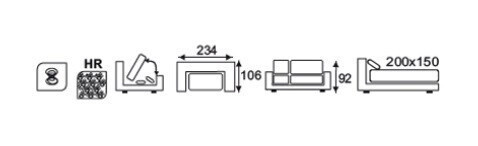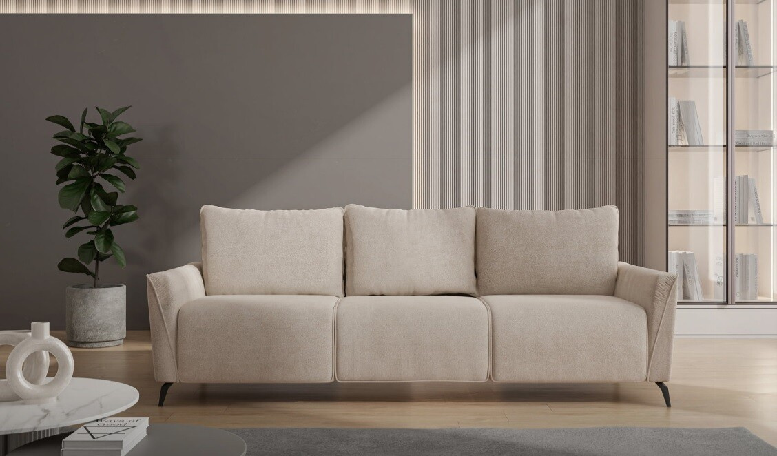 Pohovka MANILA, trojmístná pohovka je rozkladatelná s úložným prostorem. Výplň sedáku tvoří vysoce elastická HR pěna a pružiny bonell. Pohovku zdobí nožky v černé barvě. Moderní mechanismus umožňuje rozložit pohovku do polohy na spaní mírným nadzvednutím sedáku a posunutím dopředu.