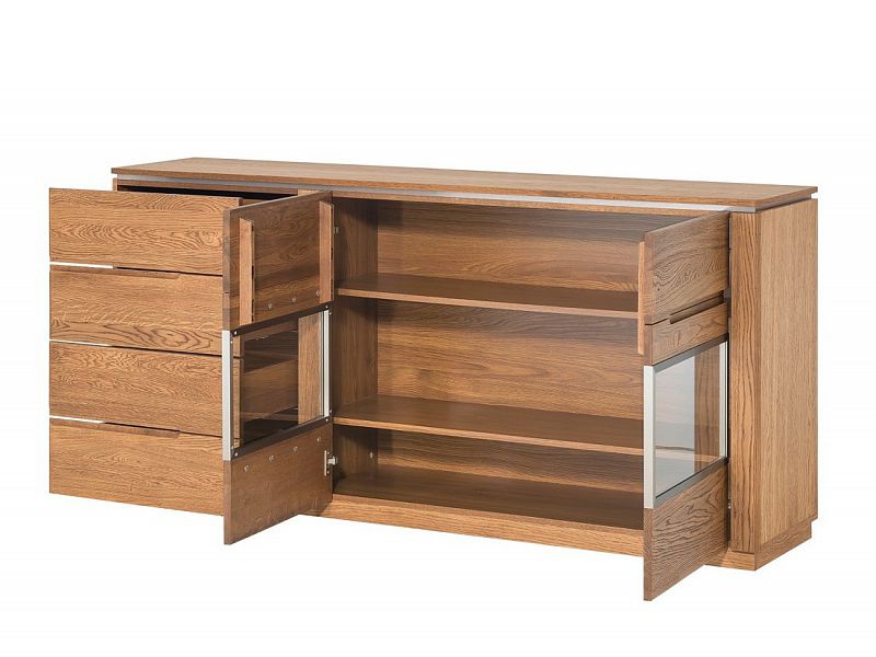 Systém MONET je vyroben z masivu, díky kterému se stane každý interiér jedinečný. Masivní dřevo přináší do interiéru jedinečný vzhled, který spolu se skleněnými detaily a kovovými doplňky zdůrazňují originální design nábytku. Krásná struktura dřeva je podtržena příjemnou barvou rustikálního dubu. Tento nábytek je nejen dokonalý, ale i vysoce funkční a tak splní potřeby v moderním interiéru.