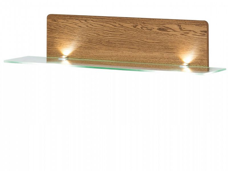 MONET police - panel z masivu, police skleněná, včetně LED osvětlení