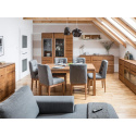 Systém MONET je vyroben z masivu, díky kterému se stane každý interiér jedinečný. Masivní dřevo přináší do interiéru jedinečný vzhled, který spolu se skleněnými detaily a kovovými doplňky zdůrazňují originální design nábytku. Krásná struktura dřeva je podtržena příjemnou barvou rustikálního dubu. Tento nábytek je nejen dokonalý, ale i vysoce funkční a tak splní potřeby v moderním interiéru.