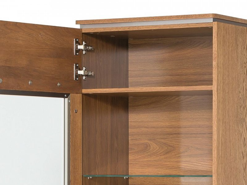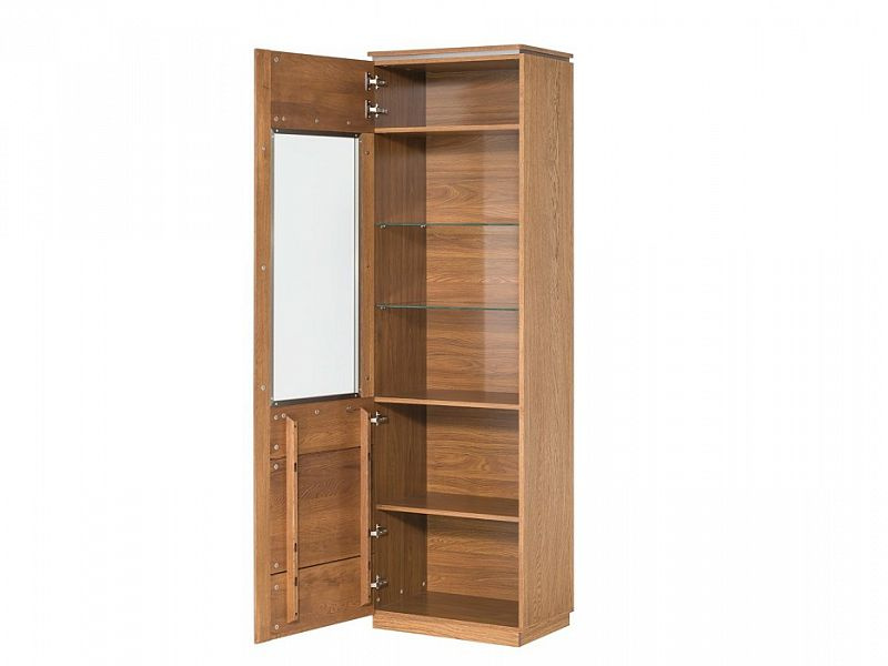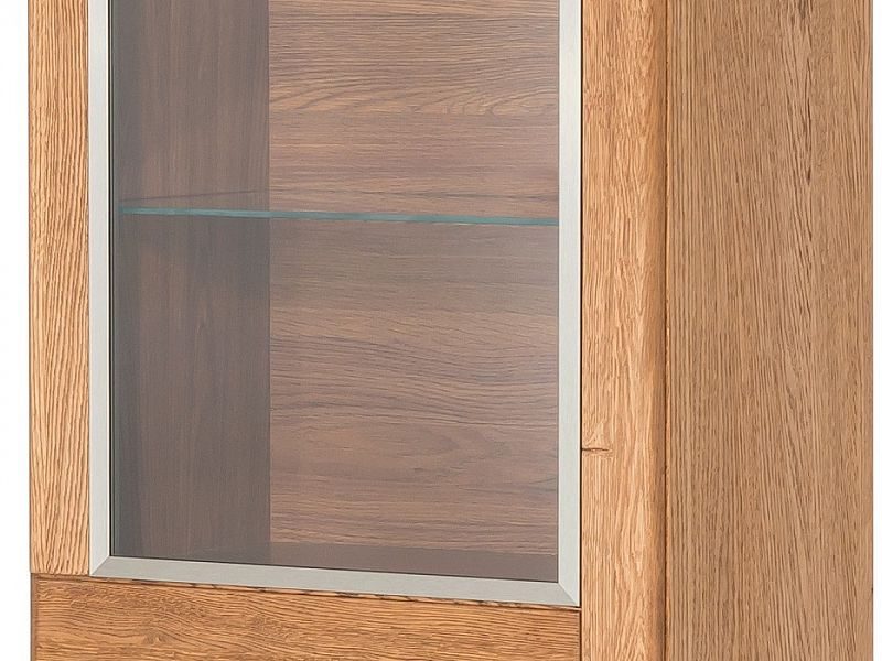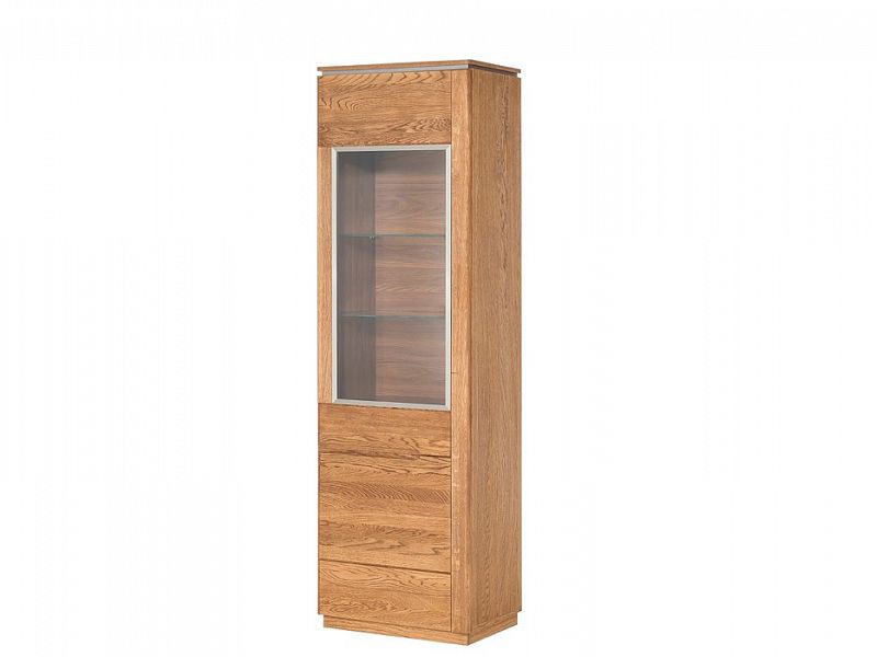 MONET vitrína levá - jednodvéřová, částečně prosklená, policová. Sklo je tvrzené, uchycené v kovovém rámu.