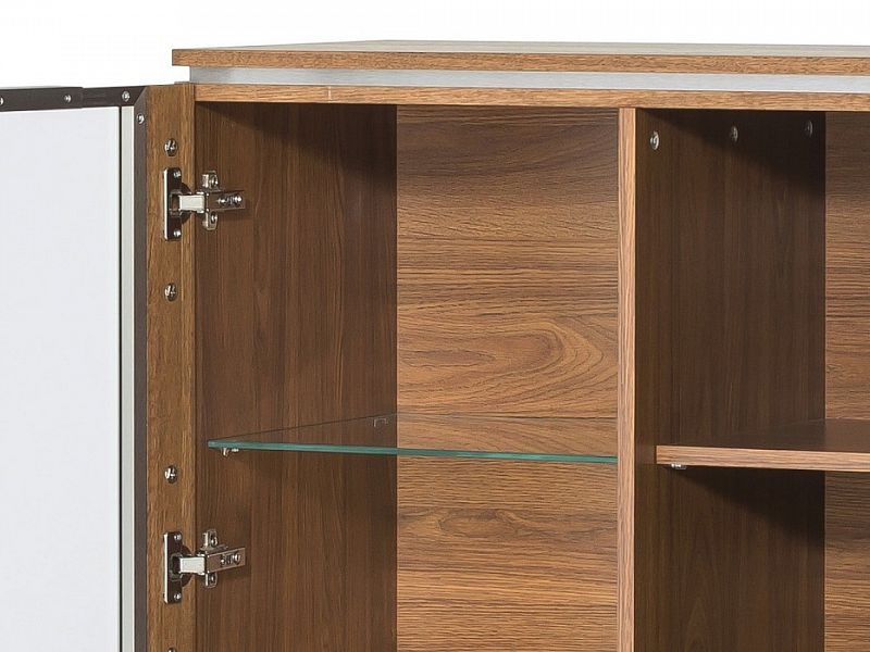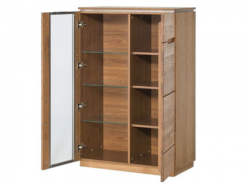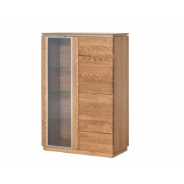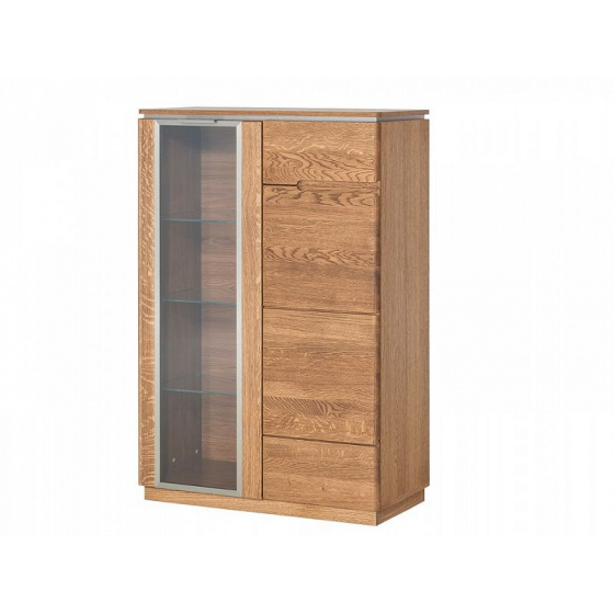 MONET vitrína nízká - dvoudvéřová, částečně prosklená, policová. Sklo je tvrzené, uchycené v kovovém rámu.
