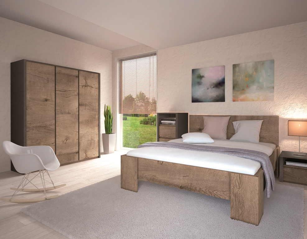 Elegantní nábytkový systém MONTANA má množství segmentů, ze kterých si sami můžete sestavit obývací pokoj, ložnici nebo jídelnu. Sektor MONTANA je vyroben z kvalitní MDF s přiznanou strukturou dřeva, ve dvou barevných dekorech - dub lefkas a dub lefkas ( čelní plochy ) / šedá  ( korpus ). Dvířka mají bezúchytové otevíraní.