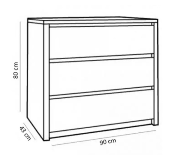 Komoda šuplíková K3S - tři objemné šuplíky.