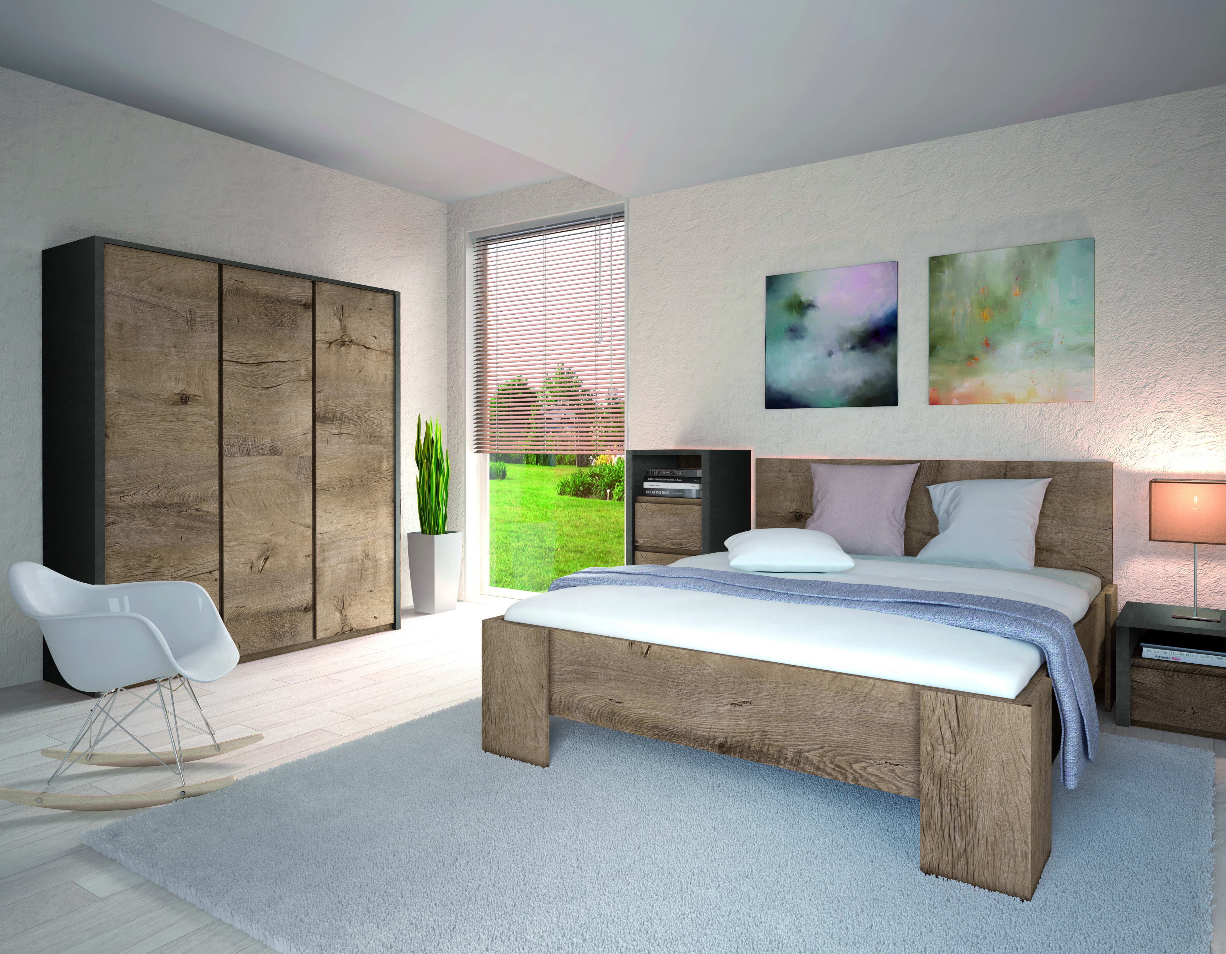 Elegantní nábytkový systém MONTANA má množství segmentů, ze kterých si sami můžete sestavit obývací pokoj, ložnici nebo jídelnu. Sektor MONTANA je vyroben z kvalitní MDF s přiznanou strukturou dřeva, ve dvou barevných dekorech - dub lefkas a dub lefkas ( čelní plochy ) / šedá ( korpus ). Dvířka mají bezúchytové otevíraní.