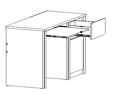 PC stůl - s jedno dvířkovou skříňkou, šuplíkem a  výsuvnou deskou pro klávesnici.