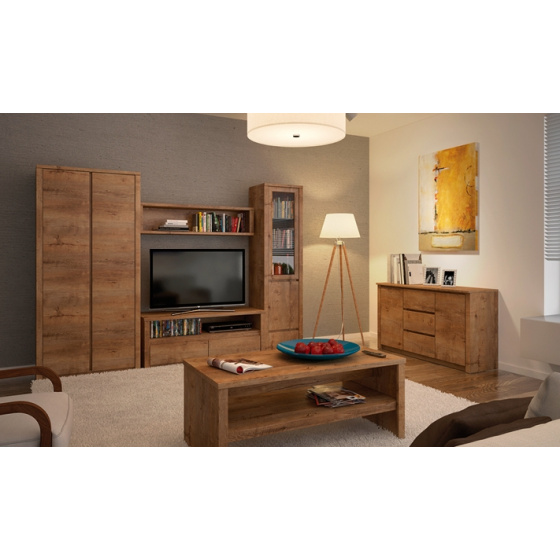 Elegantní nábytkový systém MONTANA má množství segmentů, ze kterých si sami můžete sestavit obývací pokoj, ložnici nebo jídelnu. Sektor MONTANA je vyroben z kvalitní MDF s přiznanou strukturou dřeva, ve dvou barevných dekorech - dub lefkas a dub lefkas ( čelní plochy ) / šedá ( korpus ). Dvířka mají bezúchytové otevíraní.