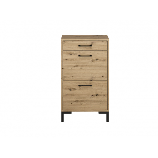 NEVIO je elegantní a praktický systémový nábytek do obývacího pokoje i předsíně. Sektor NEVIO je vyroben z kvalitního lamina v dekoru dub artisan. Dvířka a šuplíky jsou vybaveny tichým dovíráním. Kombinace výrazného dubového dekoru s černými úchytkami a nožkami je dokonalým řešením pro moderní interiér předsíně i obývacího pokoje. Velký výběr komod, prostorná šatní skříň i knihovny, zkrátka vše co potřebujete k vytvoření útulného domova.