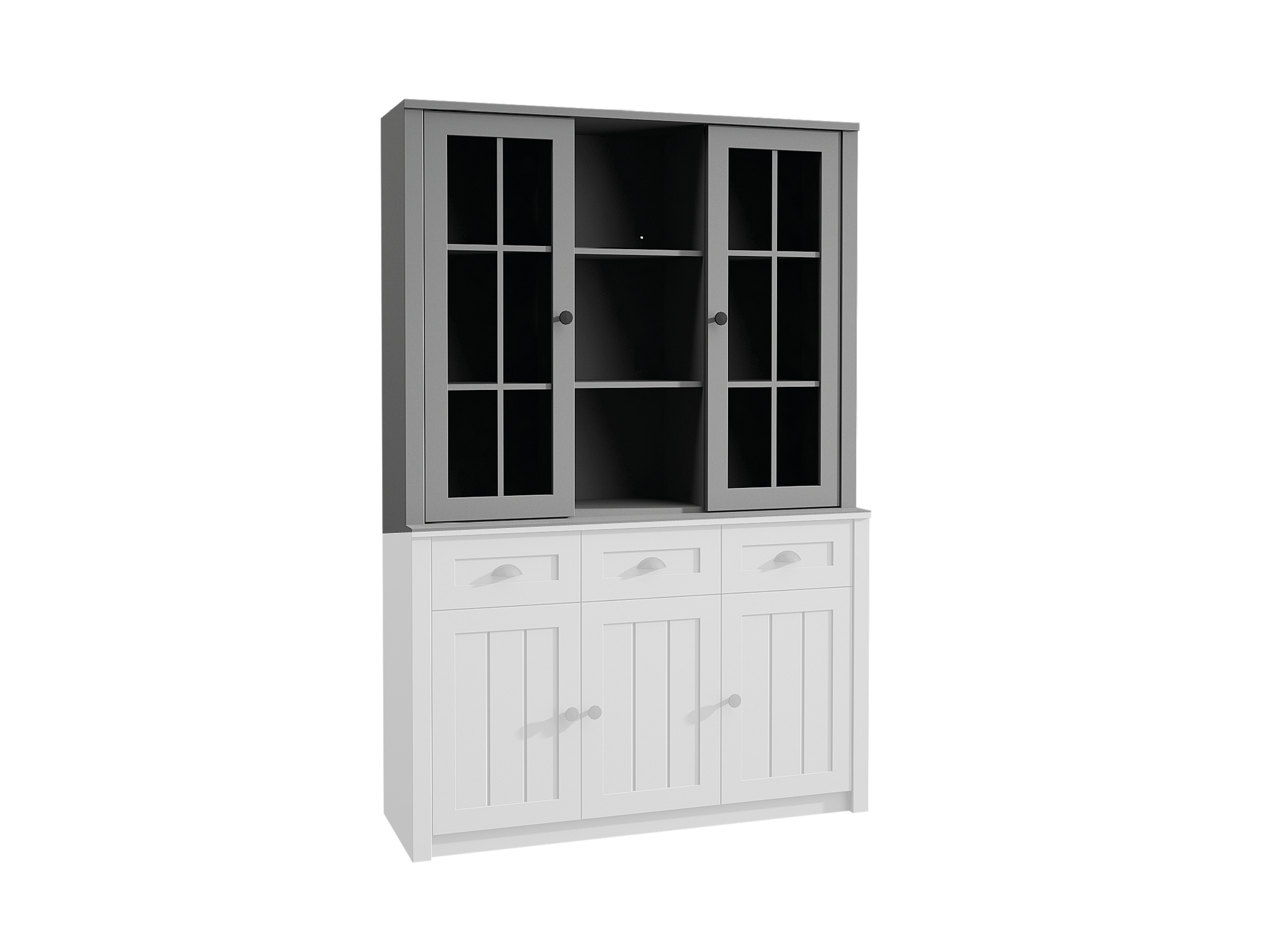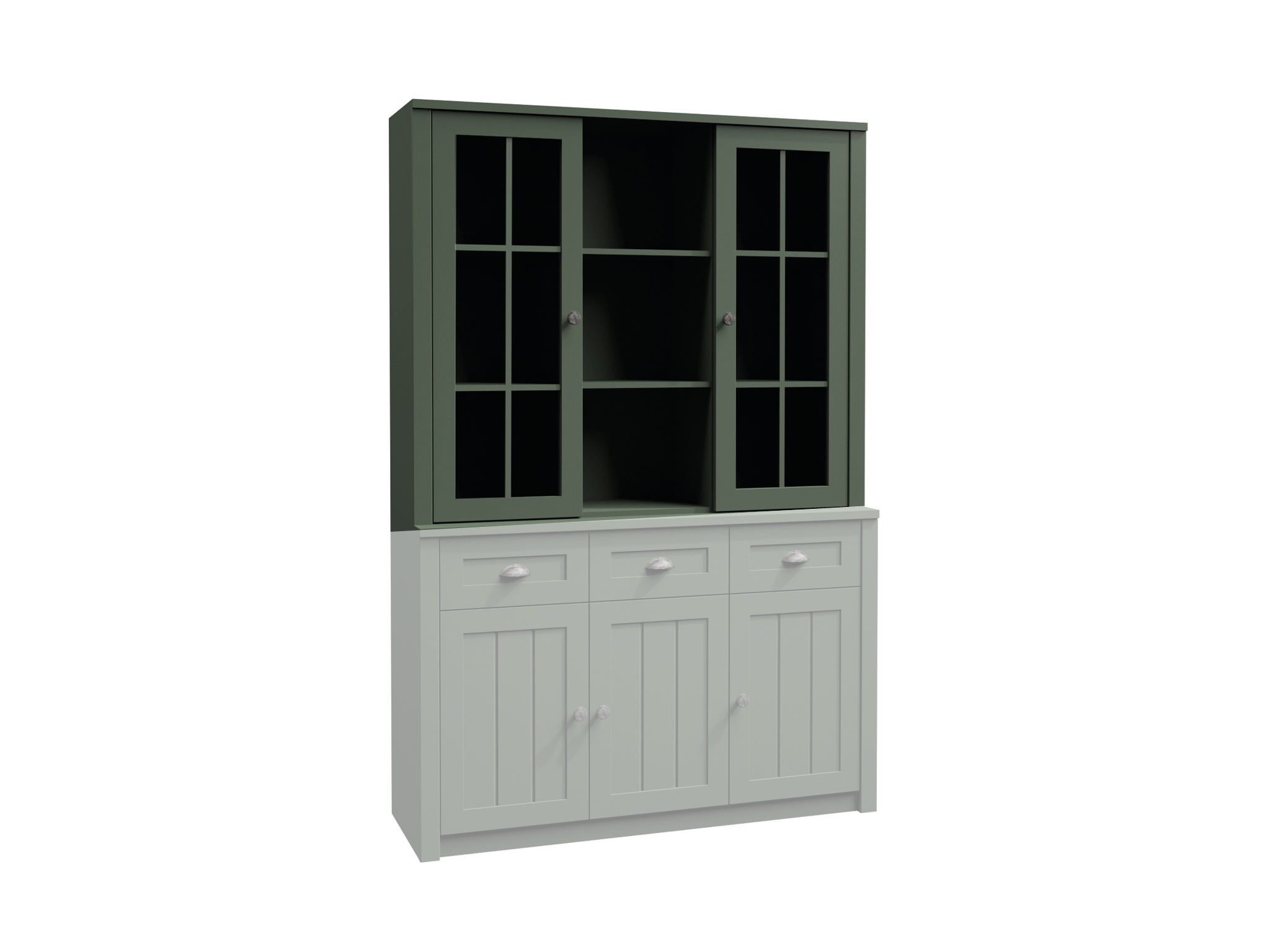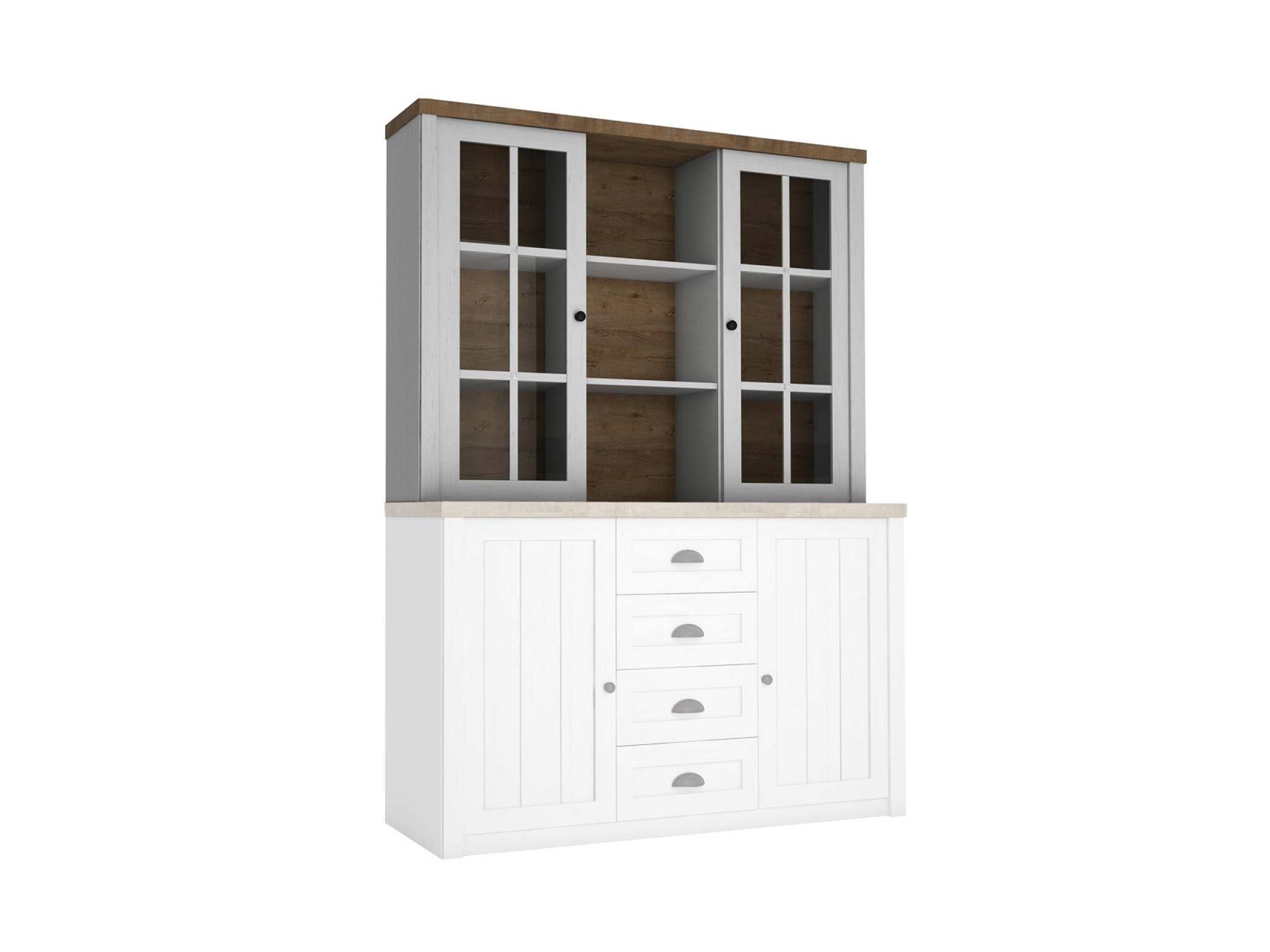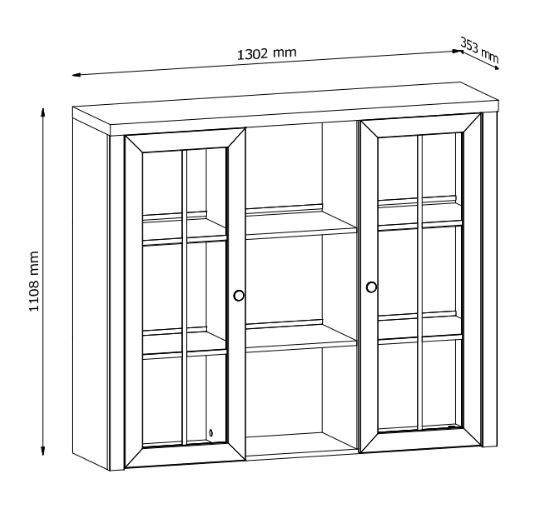 Nádstavec W2D ze systému PROWANSJA Sosna Andersen - policový, po stranách prosklená dvířka, uprostřed otevřená nika. Nástavec můžete požít na všechny komody PROWANSJA s šířkou 130 cm.