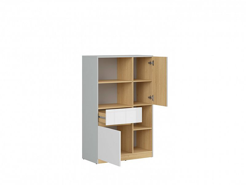 Komoda ze systému NANDU - dvoudveřová s policemi, otevřené police, šuplík