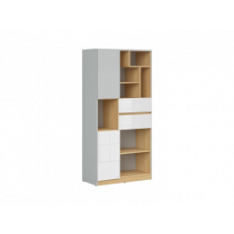 Regál ze systému NANDU - dvoudveřový s policemi, otevřené police, 2x šuplík
