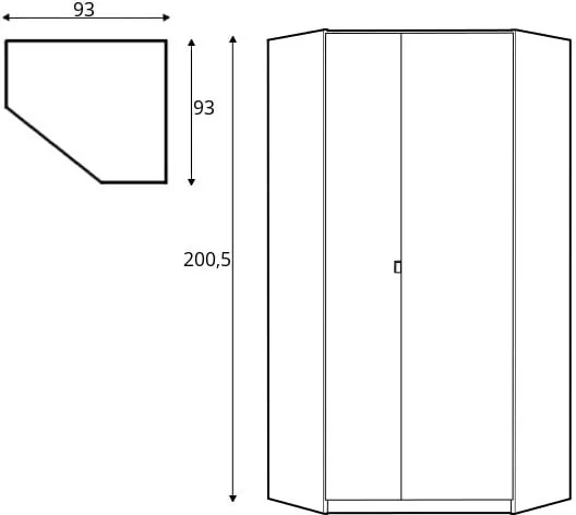 Rozměry: š. 93 cm / v. 200,5 cm / hl. 93 cm
