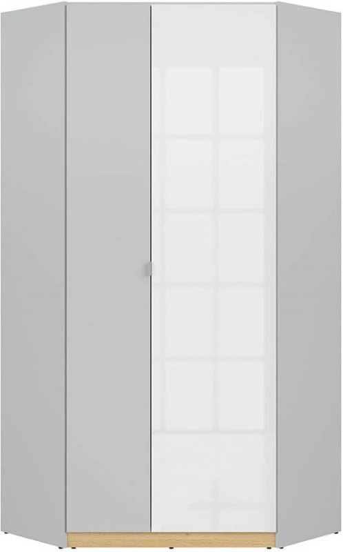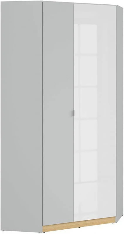Rohová šatní skříň ze systému NANDU - dvoudveřová s policemi, 2 šatní tyče