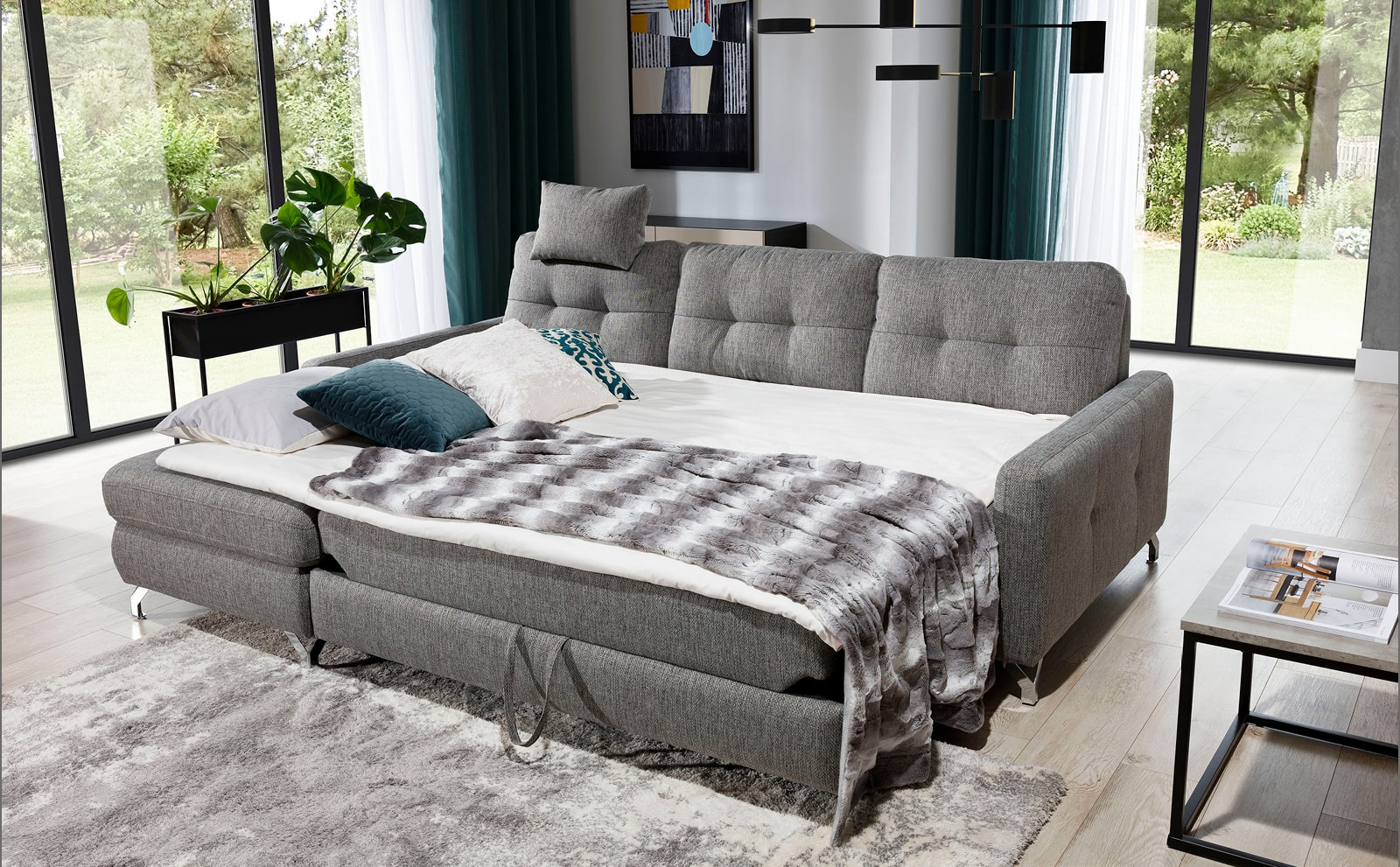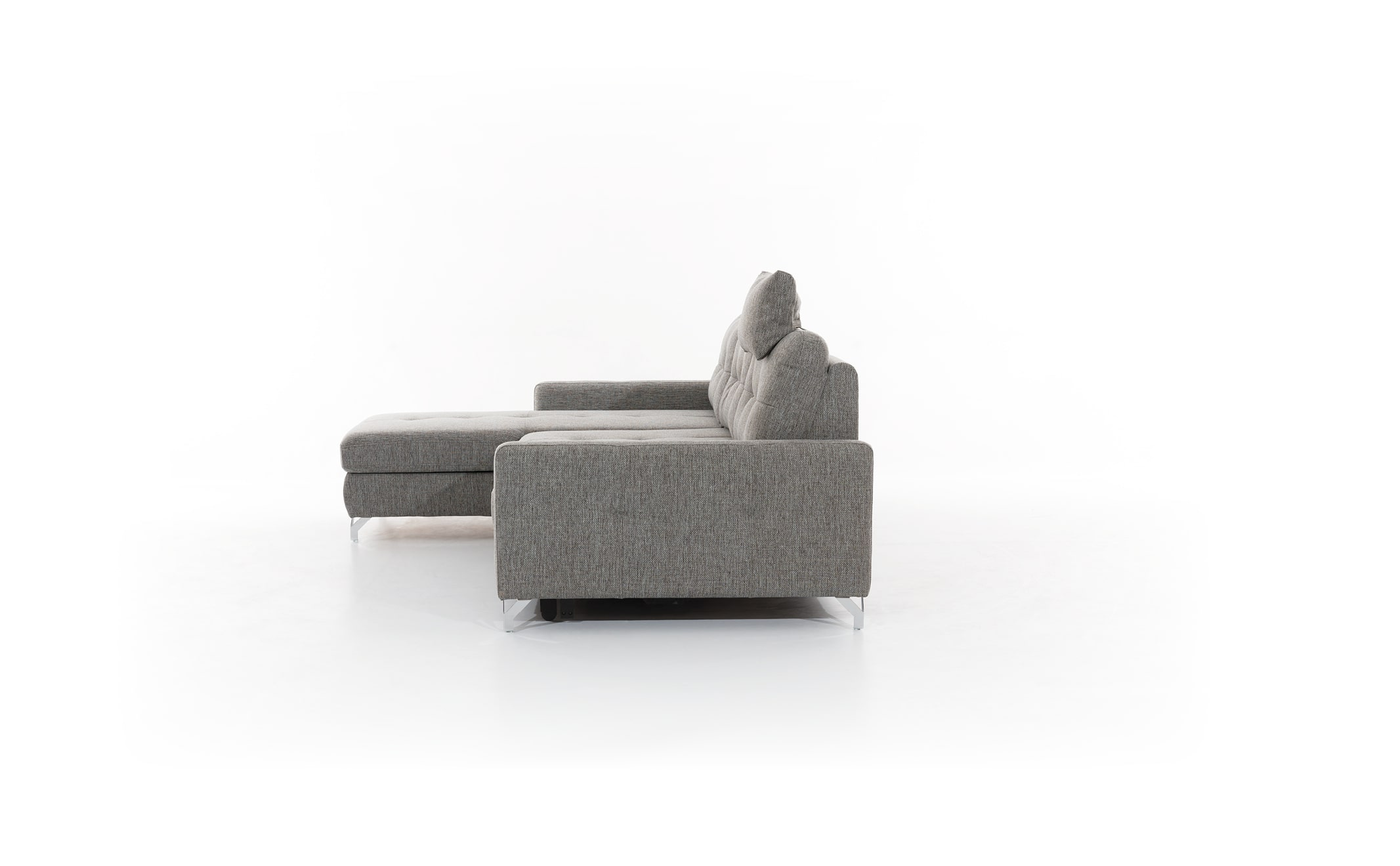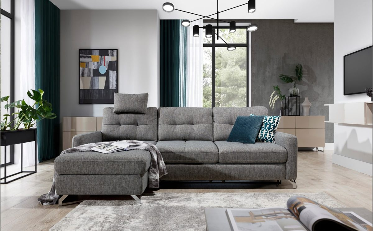 Moderní rohová sedací souprava. Sedačka je rozkládací s lůžkem pro příležitostné přespání, úložným prostorem pro lůžkoviny nebo deky. U rohovky je kladen důraz na pohodlí sezení nastavitelnými opěráky s úpravou hloubky sedu. Velký výběr potahových látek je samozřejmostí. Výplň sedáků je tvořena kombinací pružin Faliste a sendvičové pěny, která zajistí pohodlné sezení.