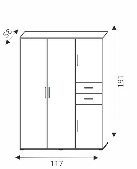 Rozměry : v. 191 cm / š. 117 cm / h. 58 cm
