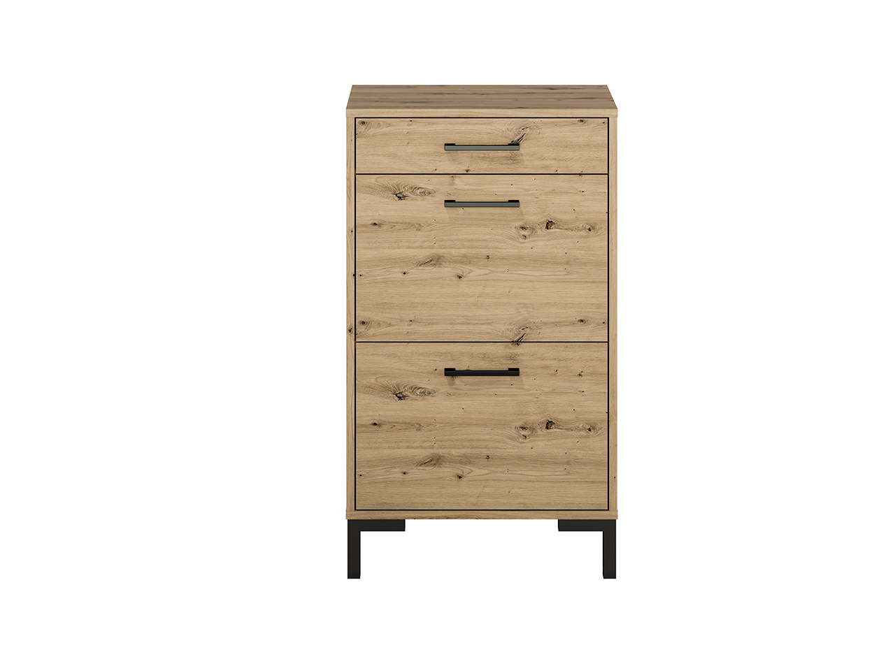 NEVIO je elegantní a praktický systémový nábytek do obývacího pokoje i předsíně. Sektor NEVIO je vyroben z kvalitního lamina v  dekoru dub artisan. Dvířka a šuplíky jsou vybaveny tichým dovíráním. Kombinace výrazného dubového dekoru s černými úchytkami a nožkami je dokonalým řešením pro moderní interiér předsíně obývacího pokoje. Velký výběr komod, prostorná šatní skříň i knihovny, zkrátka vše co potřebujete k vytvoření útulného domova.
