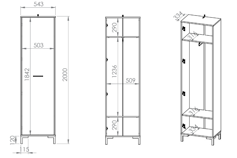 Rozměr: š. 55 cm / v. 200 cm / hl. 34 cm