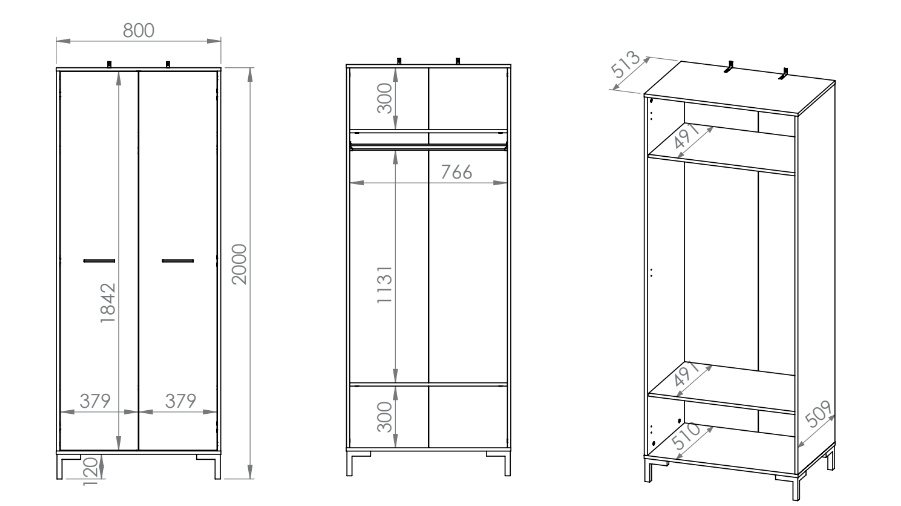 Rozměr: š. 80 cm / v. 200 cm / hl. 51 cm