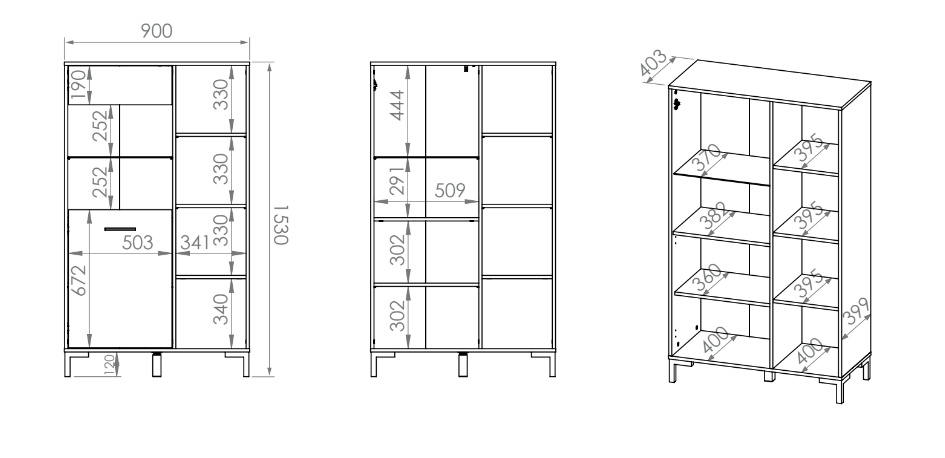 Rozměr: š. 90 cm / v. 153 cm / hl. 40 cm