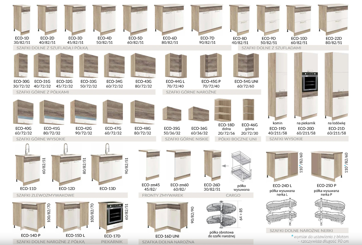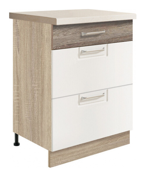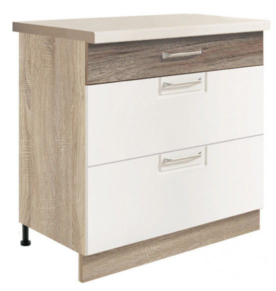 Spodní kuchyňské skříňky se dodávají bez soklu a bez pracovní desky, které si můžete vybrat z naší nabídky.