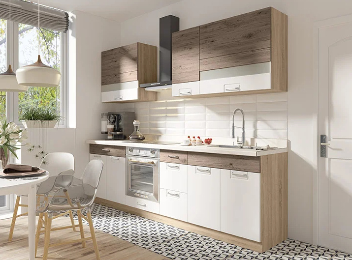 Kuchyňské skříňky jsou dodávány v demontu s návodem k montáži, bez dřezu, vodovodní baterie, spotřebičů a dekorací