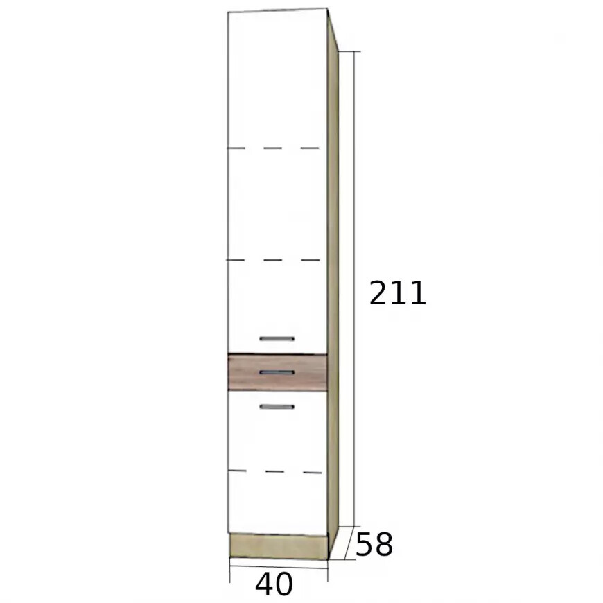 Spodní skříňka kuchyně NINA 19D"40"- potravinová s dvířky nad sebou, se třemi policemi a šuplíkem mezi dvířky