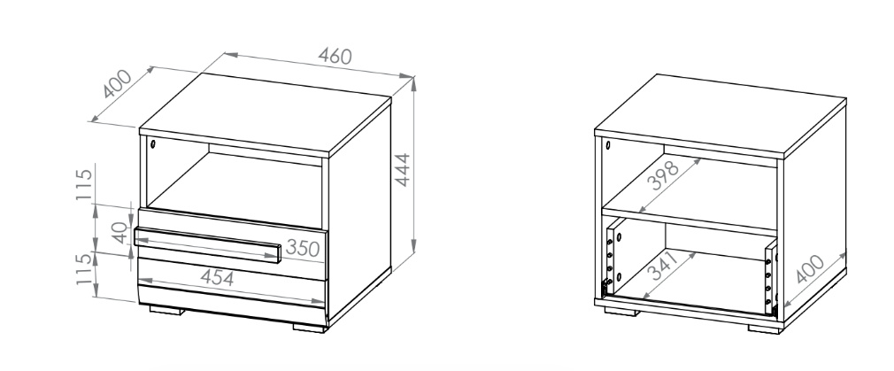 Noční stolek BLANCO 18, jeden šuplík a otevřená odkládací police.