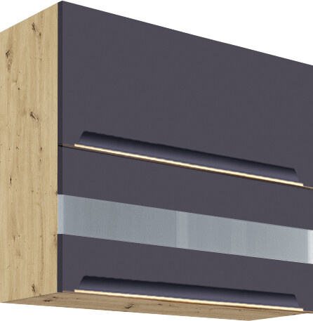 Spodní skříňka kuchyně NORA blue 41G"80"- s výklopnými dvířky nad sebou, spodní dvířka částečně prosklaná